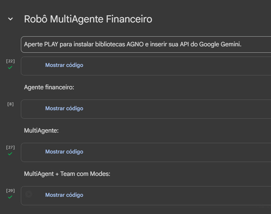 O agno é o framework em python que dá vida ao Robô MultiAgente. Ele funciona como uma colmeia de agentes de IA, onde cada agente tem um papel específico (financeiro, risco, mídia…) e todos podem colaborar entre si. Agno é considerado o melhor framework da atualidade para operar multiagentes.