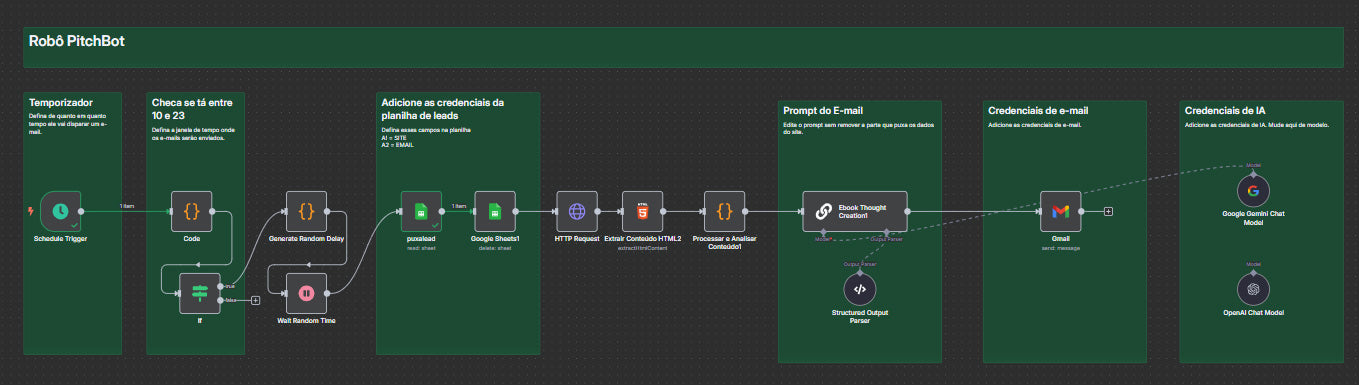 Robô PitchBot: Fluxo de N8N para Cold Email Inteligente com IA e Personalização