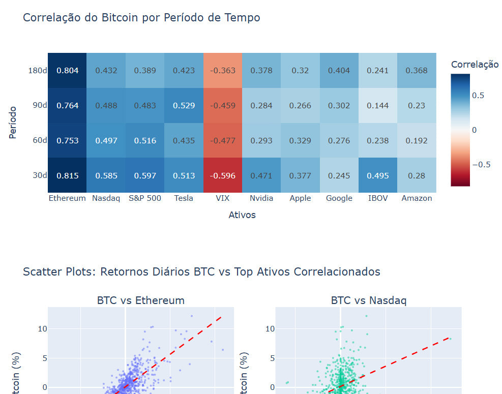 💡 Insights Finais: comparativos BTC vs Ouro/S&P e sugestões de hedge.