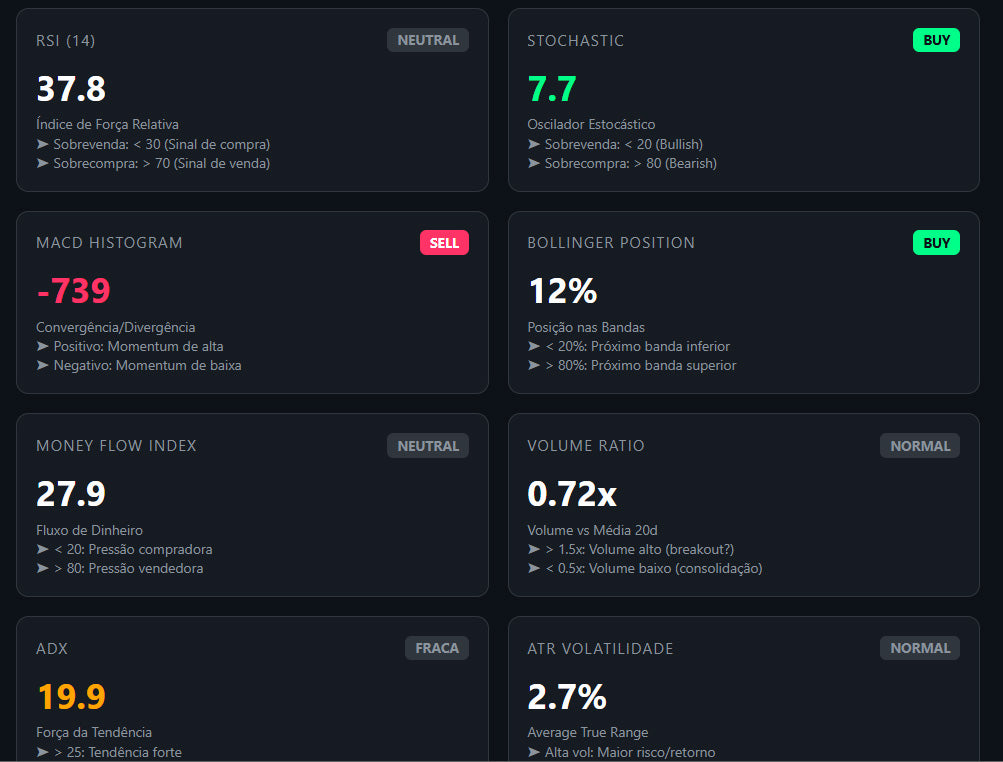 Enquanto 90% dos traders operam no escuro com indicadores básicos, você terá o mesmo nível de análise usado por fundos institucionais — dados on-chain, sentiment global e machine learning em tempo real para antecipar movimentos antes da multidão.
