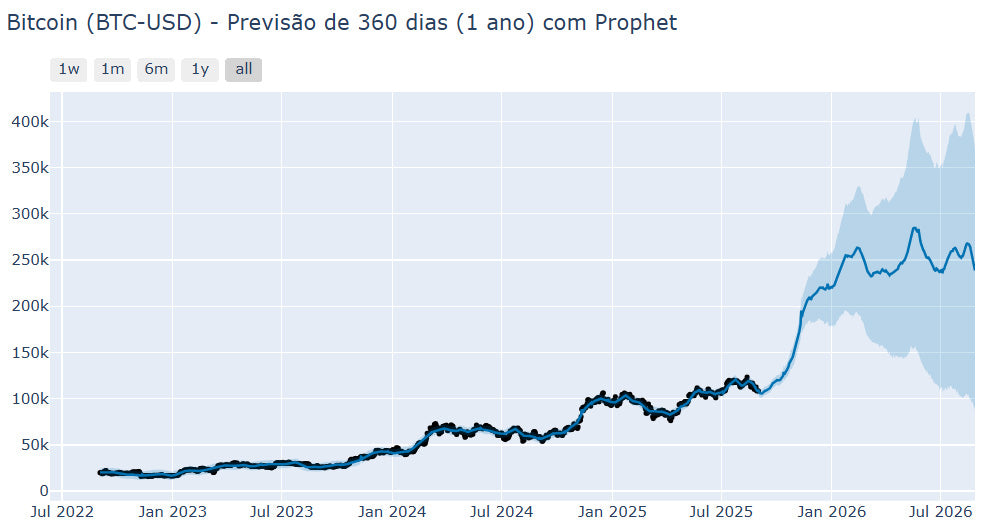 🔮 Modelo Prophet: sazonalidade completa + halving como evento especial.