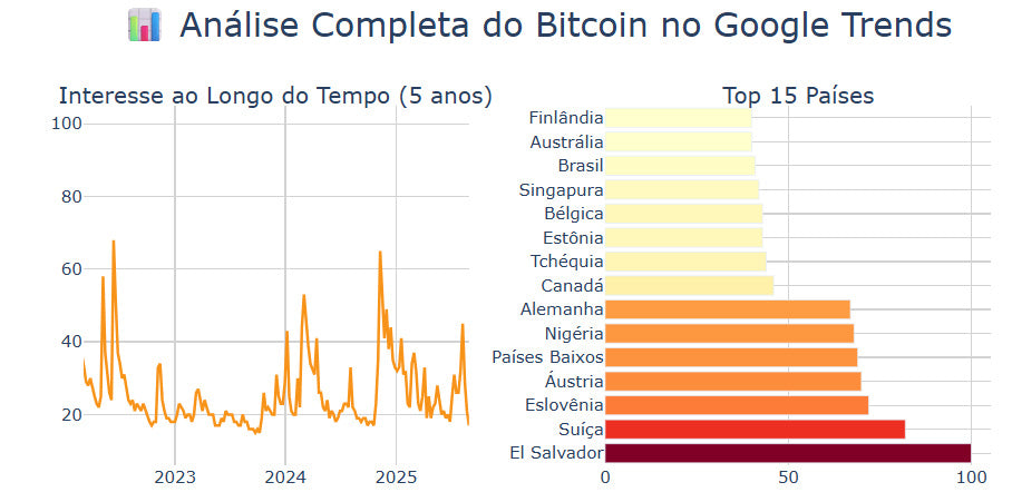 🗺️ Mapa Mundial: calor global do termo Bitcoin por região.