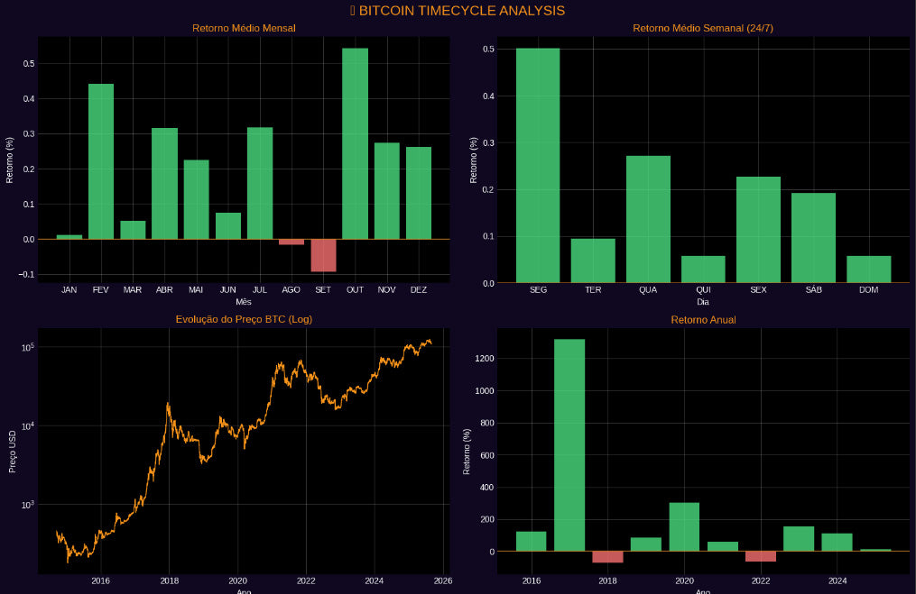 Por que isso importa? Bitcoin não é um ativo comum. Ele tem ciclos únicos (halving), métricas próprias (NVT, MVRV), correlações que mudam com macro eventos, e uma pegada digital que revela cada movimento antes do preço reagir. Análise tradicional não basta.