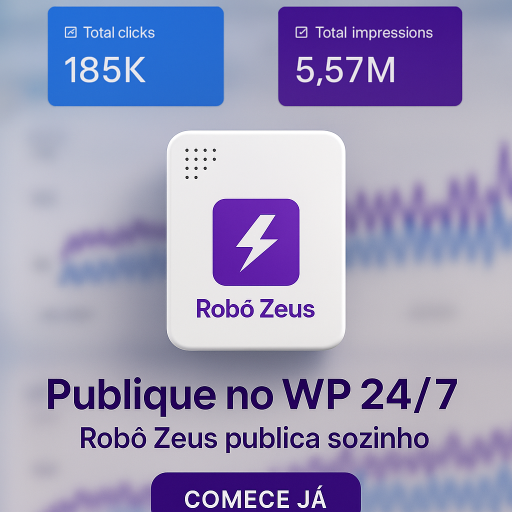 Diga adeus ao trabalho manual! O Robô Zeus transforma palavras-chave em posts completos, com imagens profissionais e FAQs poderosas, e ainda publica sozinho no WordPress. Um verdadeiro exército digital criando conteúdo para você 24/7.